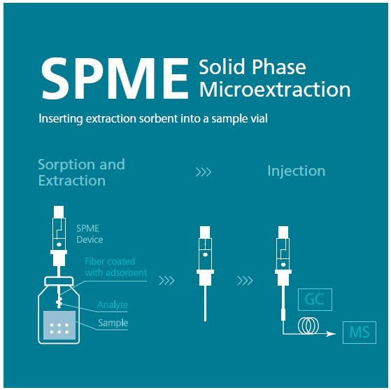 A specialized SPME needle is injected directly into liquid samples or into a sample headspace for adsorption of analytes. The needle is then inserted into the pre-heated injection port and releases the analytes through heat desorption.