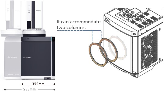 Compared to the same Nexis GC-2030 configuration, the system width has been reduced by approximately 35 %. Despite its space-saving design, the GC oven design does not require a dedicated column, and general capillary columns can be used. Dual-line analysis is also supported. -